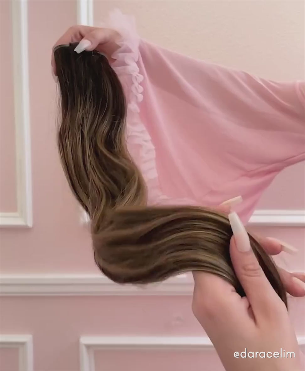 invisible clip-in hair extensions ash brown balayage.