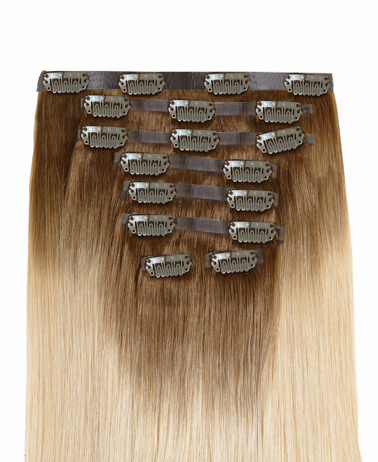 - Seamless clip-ins are made with a 50% thinner silicone base that lays flat on your head, making them virtually undetectable.