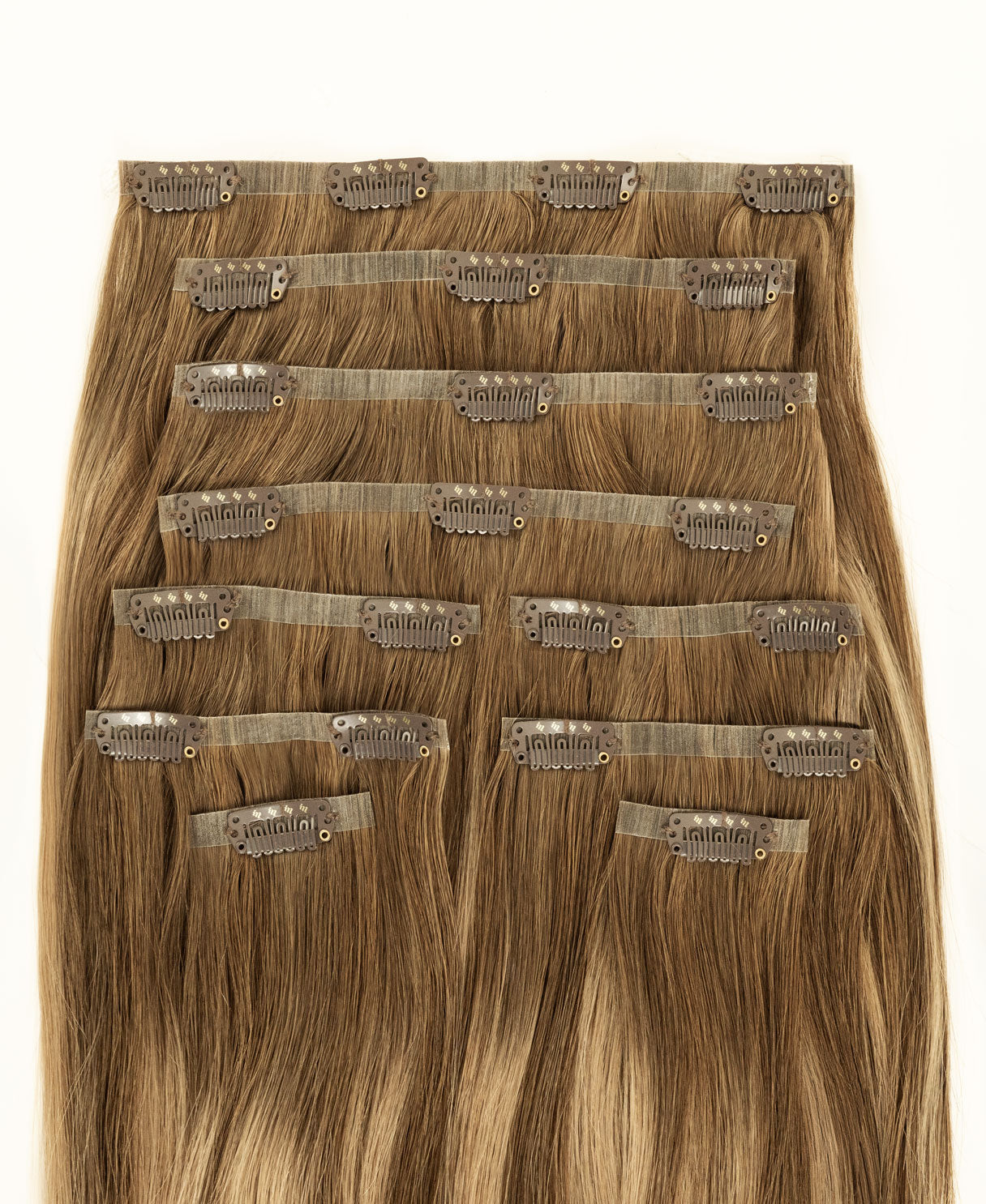 - Seamless clip-ins are made with a 50% thinner silicone base that lays flat on your head, making them virtually undetectable.