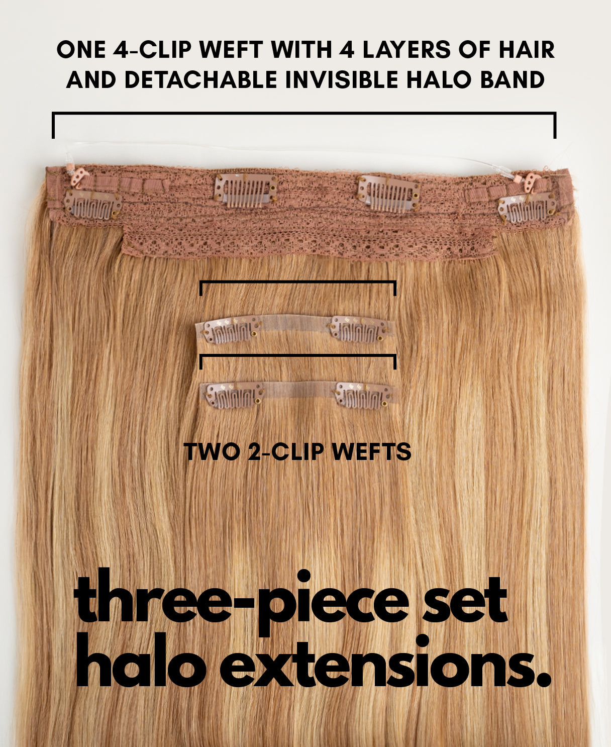 • Halo-like set, including one 4-clip weft and two 2-clip wefts: