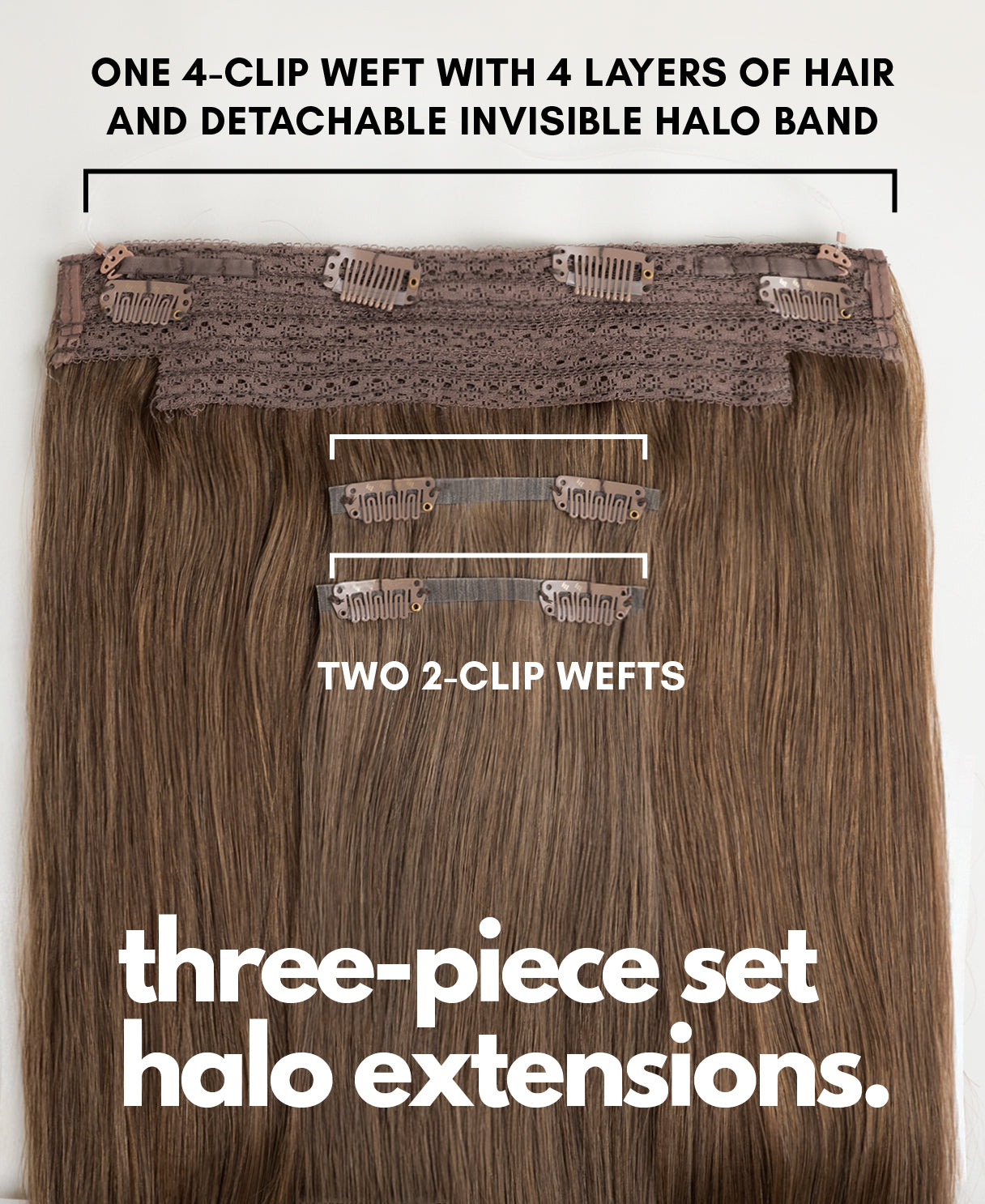 • Halo-like set, including one 4-clip weft and two 2-clip wefts: