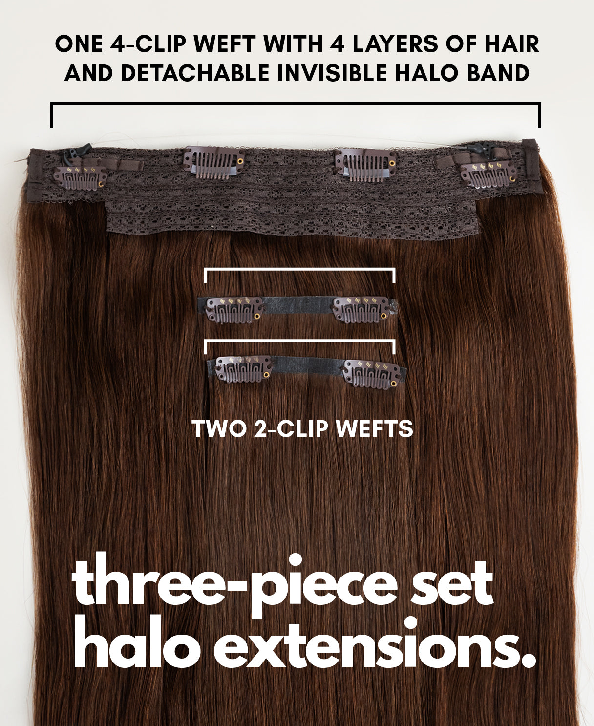 • Halo-like set, including one 4-clip weft and two 2-clip wefts: