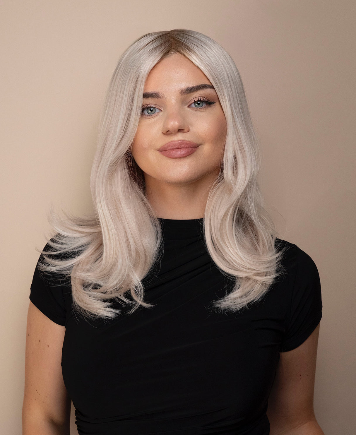 lace front mono wig - 14" shadow root white blonde.