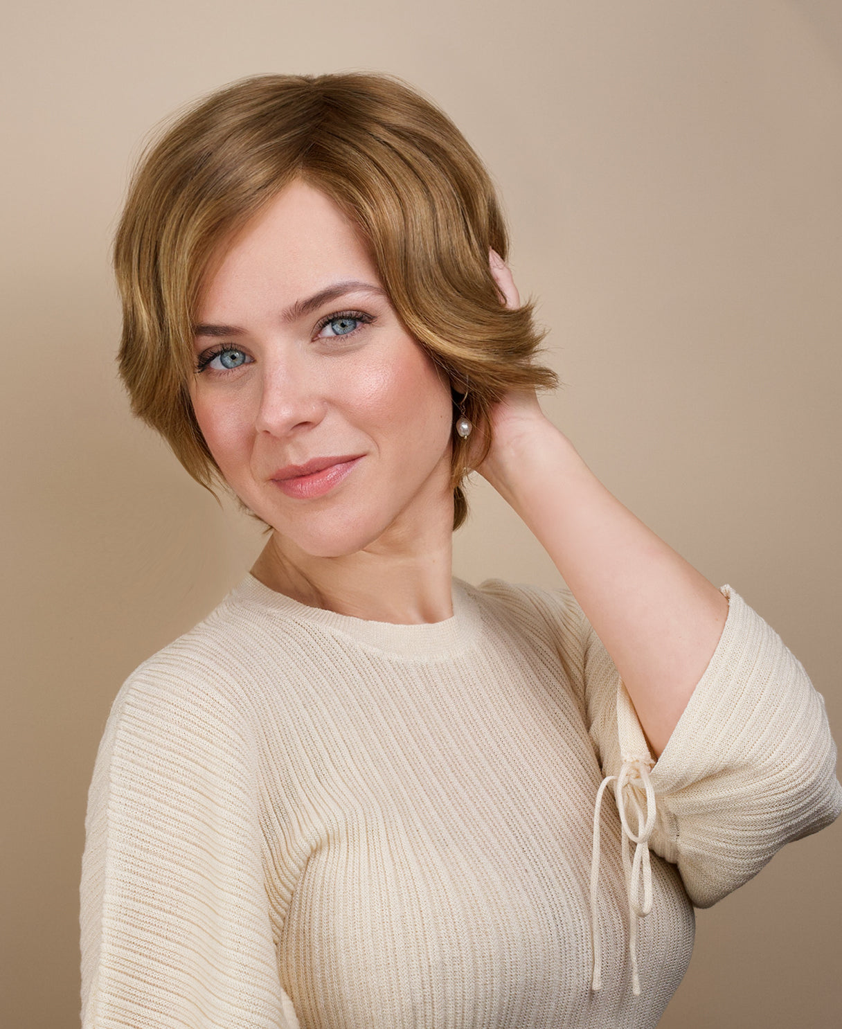 Color Medium Blonde: warm shade of blonde with bright golden hues.