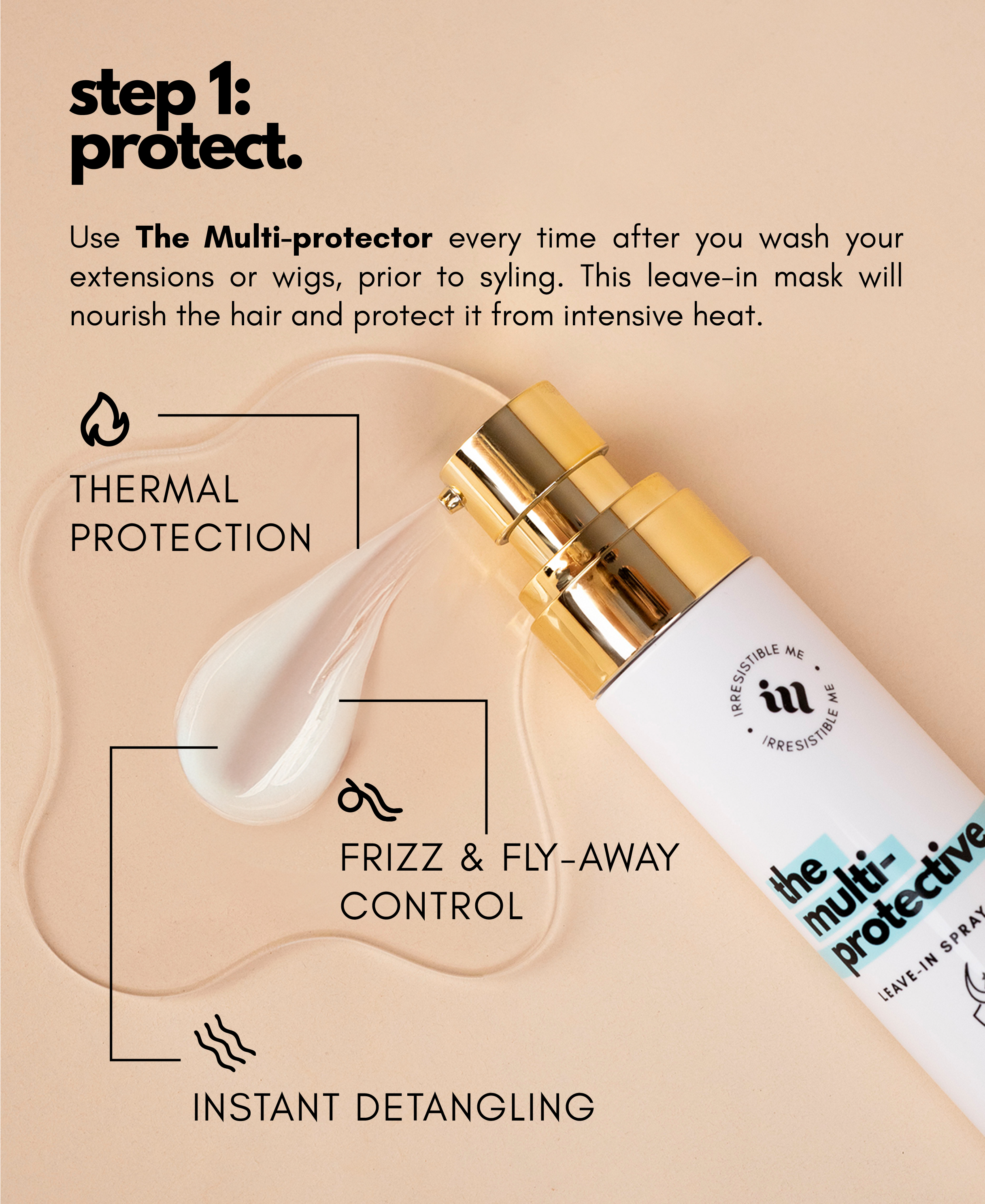 - Step 1: Protect. Use The Multi-protector every time after you wash your extensions or wigs, prior to syling. This leave-in mask will nourish the hair and protect it from intensive heat.