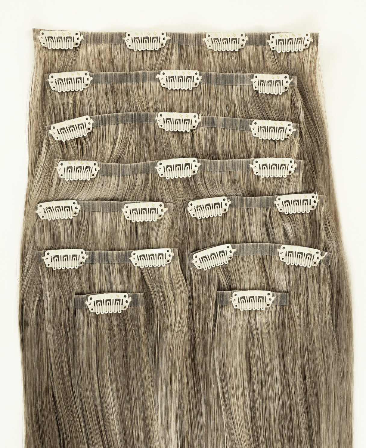 - Seamless clip-ins are made with a 50% thinner silicone base that lays flat on your head, making them virtually undetectable.